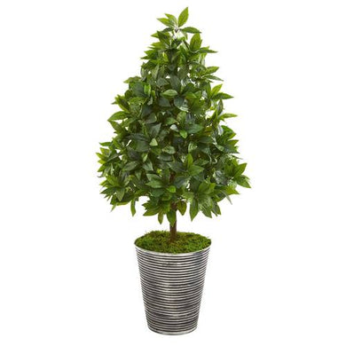 35" Sweet Bay Cone Topiary Artificial Tree in Tin Planter