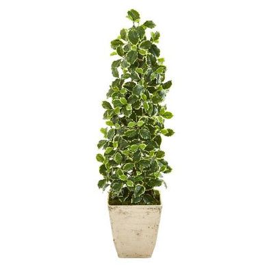 47" Variegated Holly Leaf Artificial Tree in Green Planter (Real Touch)