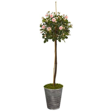 55" Rose Topiary Artificial Tree in Planter with Black Pattern