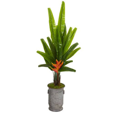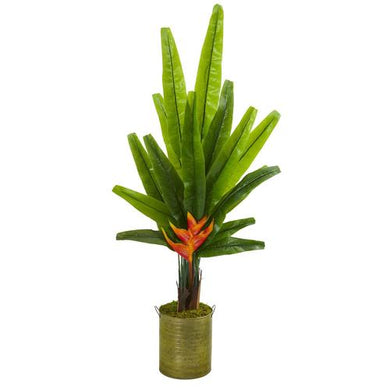 59" Traveler's Palm Artificial Tree in Vintage Metal Planter