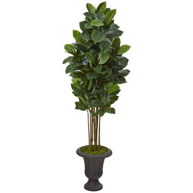 64" Rubber Leaf Artificial Tree in Decorative Brown Urn