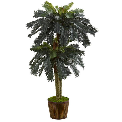 5.5' Double Sago Palm Artificial Tree in Wood Planter
