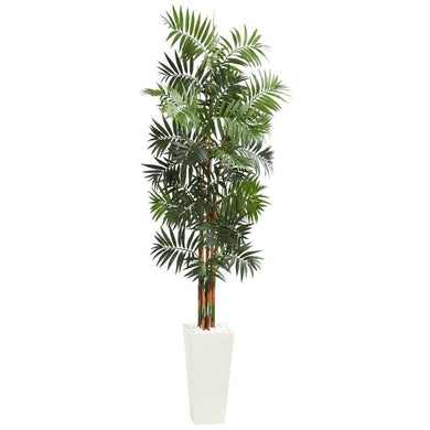 7' Bamboo Palm Artificial Tree in White Tower Planter