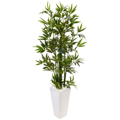 Bamboo Tree with White Planter UV Resistant (Indoor/Outdoor)