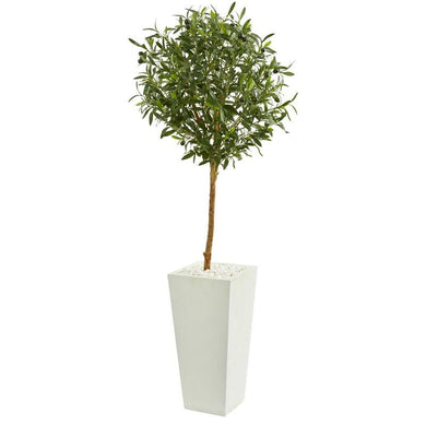 56" Olive Artificial Tree In White Tower Planter 9226 By Nearly Natural