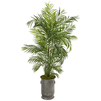 67" Areca Palm Artificial Tree in Vintage Metal Planter UV Resistant