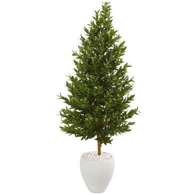 5' Olive Cone Topiary Artificial Tree in White Planter UV Resistant