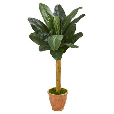 5' Rubber Leaf Artificial Tree In Red Tower Planter 9248 By Nearly Natural