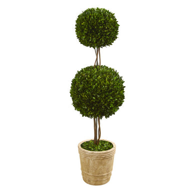 4' Preserved Boxwood Double Ball Topiary Tree in Planter