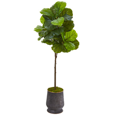 62" Fiddle Leaf Artificial Tree in Ribbed Metal Planter (Real Touch)