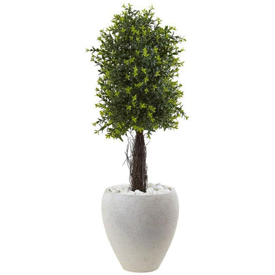 4.5' Olive Topiary Artificial Tree in Black Washed Planter