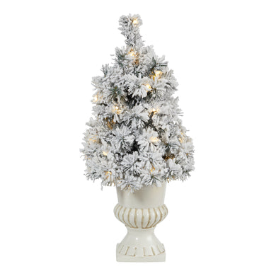 28' Flocked Artificial Christmas Tree with 30 Clear LED Lights in White Urn