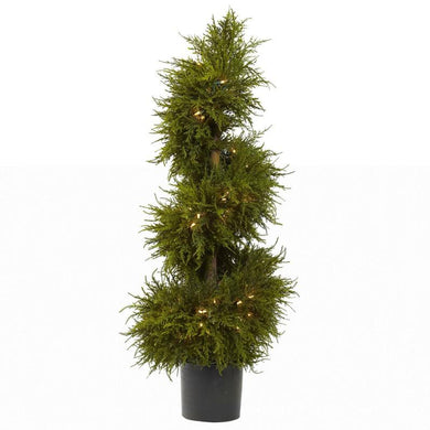 3.5' Double Pond Cypress Spiral Artificial Tree in Bowl Planter UV Resistant