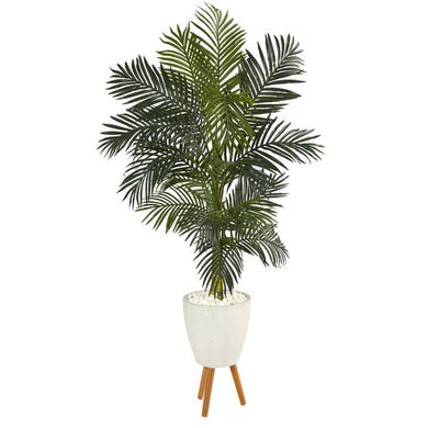 6' Golden Cane Artificial Palm Tree in White Planter with Stand