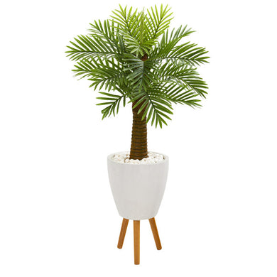 48" Robellini Palm Artificial Tree in White Planter with Stand