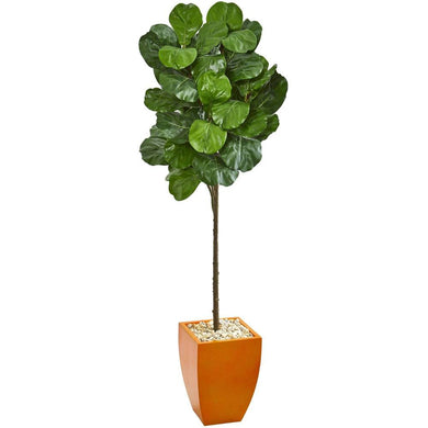 6' Fiddle Leaf Artificial Tree in Orange Planter