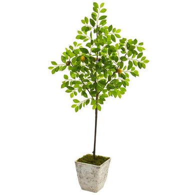 68" Lemon Artificial Tree In Country White Planter 9611 By Nearly Natural