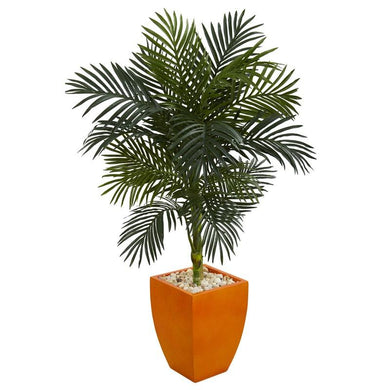4.5' Golden Cane Palm Artificial Tree in Orange Planter