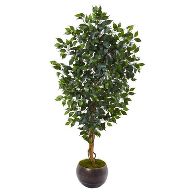 64" Ficus Artificial Tree in Metal Bowl