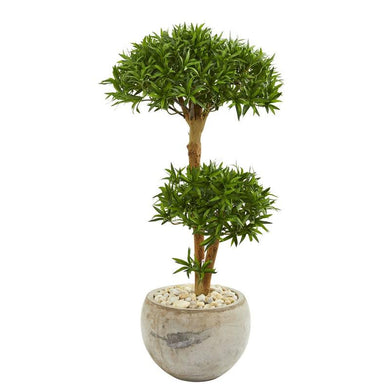 43" Bonsai Styled Podocarpus Artificial Tree In Sandstone Planter