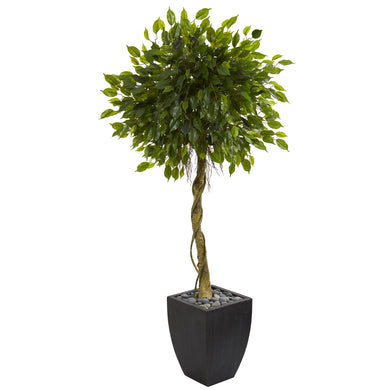 5.5' Ficus Artificial Tree in Black Wash Planter UV Resistant