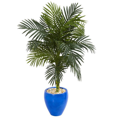 4.5' Golden Cane Artificial Palm Tree in Blue Oval Planter