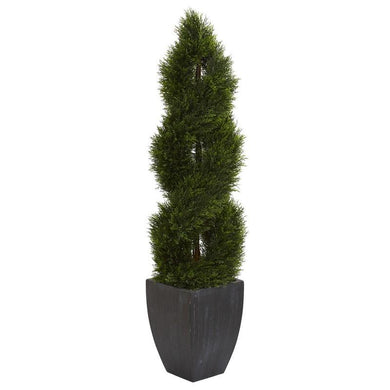 5' Double Pond Cypress Spiral Topiary Artificial Tree in Black Wash Planter