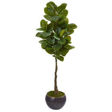 64" Rubber Leaf Artificial Tree in Metal Planter (Real Touch)