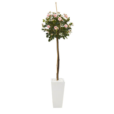 5' Rose Topiary Artificial Tree in White Planter