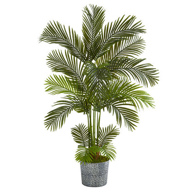 5.5' Areca Palm Artificial Tree in Embossed Black Tin Planter