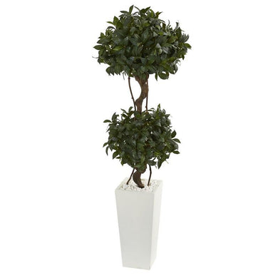 5' Sweet Bay Artificial Double Topiary in White Tower Planter