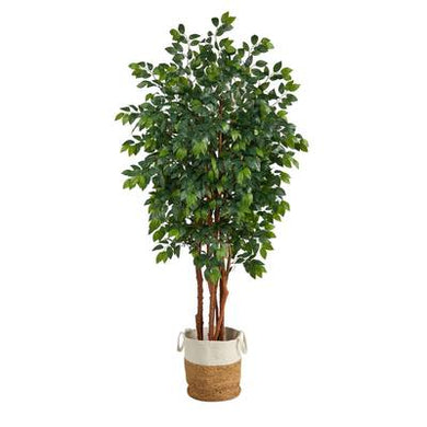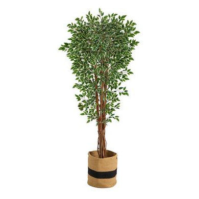 70" Variegated Ficus Artificial Tree in Handmade Natural Cotton Planter UV Resistant (Indoor/Outdoor)