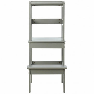 Wooden Kids Kitchen Learning Toddler Tower w/ Safety Rail-Gray