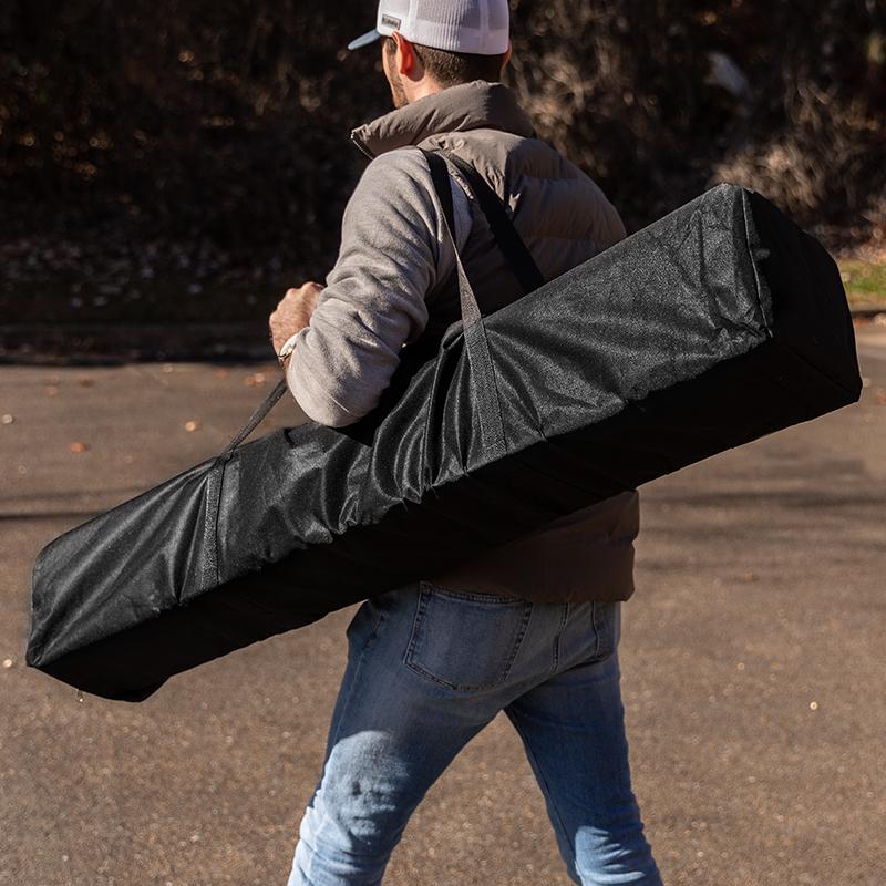 Portable shelters are an excellent way to provide shade during outdoor events and this blue all-weather 10' x 10' pop up canopy tent will help keep you out of the elements so you can enjoy your time with family and friends. The weather resistant polyester top has reinforced corners to prevent ripping or tearing and is UV coated to resist fading from the sun's rays. Simply unfold the fabric top, attach to the upper frame with the hook and loop fasteners, extend the bottom legs and pull open for instant protection. Strength and durability abound in this instant canopy. The white powder coated steel frame is rust and corrosion resistant and locks in place with a "pinch free" locking mechanism. The height adjustable frame takes you from the backyard to the beach and everywhere in between. This canopy pop up tent folds up when not in use and has its own bag for easy storage. This quick shade canopy includes the frame, canopy top and stabilizing ground stakes. Assembly takes less than 10 minutes and does not require tools. Take this portable shade canopy on camping trips, tailgating, the kids soccer games or for get togethers on your patio or in the yard. This party canopy tent will look great season after season.