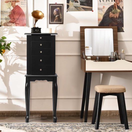 2 Colors Armoire Storage Standing Jewelry Cabinet with Mirror-Black