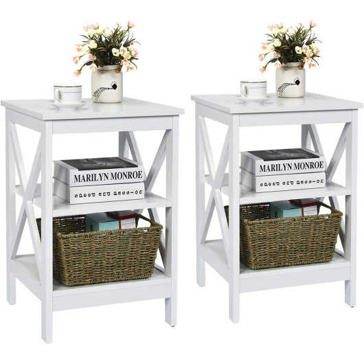 3-Tier X-Design Nightstands with Storage Shelves for Living Room Bedroom-White