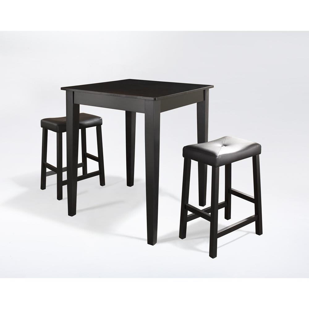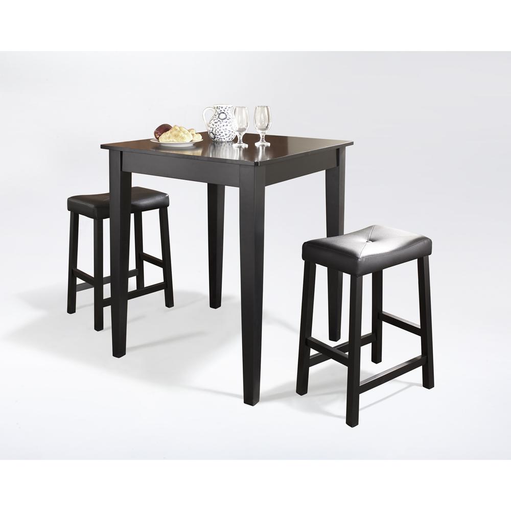 3Pc Pub Dining Set W/Upholstered Saddle Stools Black - Pub Table & 2 Counter Stools