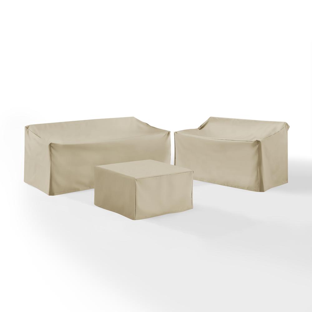 3Pc Sectional Cover Set Tan - Loveseat, Sofa, & Square Table/Ottoman