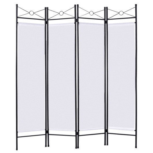 4 Panels Metal Frame Room Private Folding Screen-White