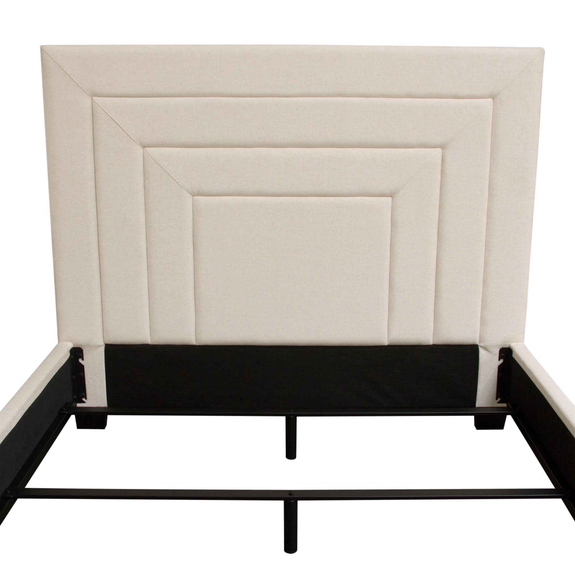 The Arden Bed by Diamond Sofa is a hand crafted, full-scale upholstered bed standing 54 inches tall. The 12 inch frame includes four slats with center supports added into the cleats for structural integrity. With its square headboard, geometric accent detailing on the Headboard and wood feet finished in a rich medium walnut finish providing the backdrop for the Light Cream Polyester finish - timeless sophistication is the result. Bed is available in Queen & Eastern King sizes. Foundation or Box Spring is required.