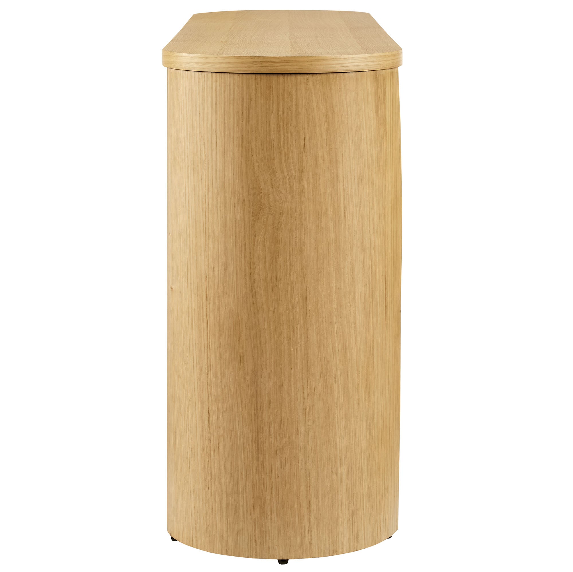 Bring a modern touch to your living room, hallway, or entryway with the sleek tabletop and innovative leg design of the Aspect Oval Console Table. Crafted from high-quality oak wood veneer and MDF, this 60" oval entryway table is both stylish and durable. The legs feature a unique arched design that can be reversed to face inward or outward, allowing you to customize the look of this wood hallway table. The adjustable levelers ensure stability on any surface while protecting your floors, making this narrow sofa table an essential addition to any home. Whether youÕre furnishing a new apartment or updating your living room, the Aspect Accent Console Table with Reversible Legs seamlessly combines form and function. Straightforward assembly required. One - Aspect Entryway Console Table