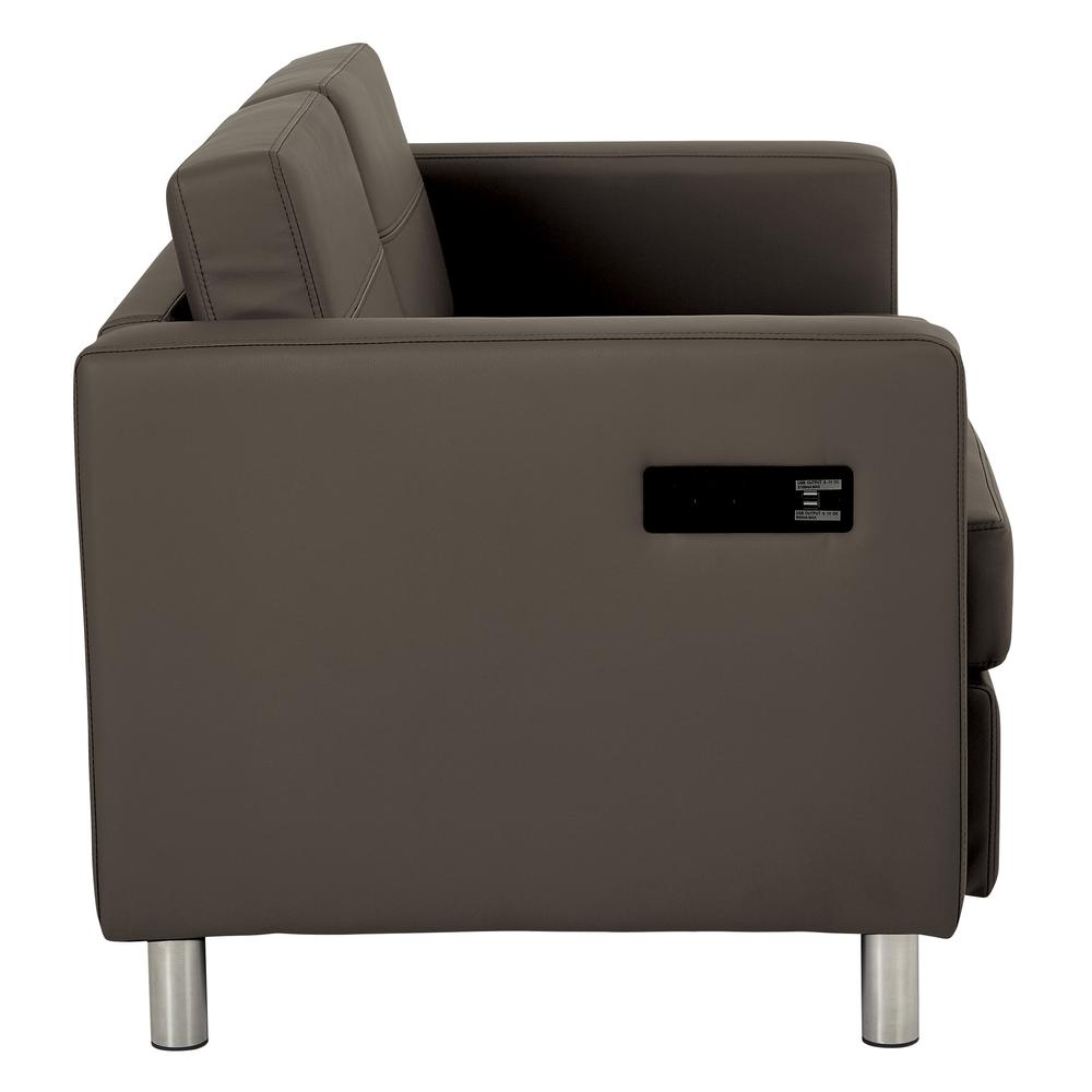 Power up. Stay connected while sitting down with this simply smart alternative in modern seating. Featuring a built in AC and USB charging station, youÕll always be able to keep your mobile devices charged up and ready to go. The attractive, modern design brings a sleek minimalist look to the home or office, while the box spring seat and high performance, easy care fabric bring you long lasting comfort and durability. Get connected with the Atlantic love seat.