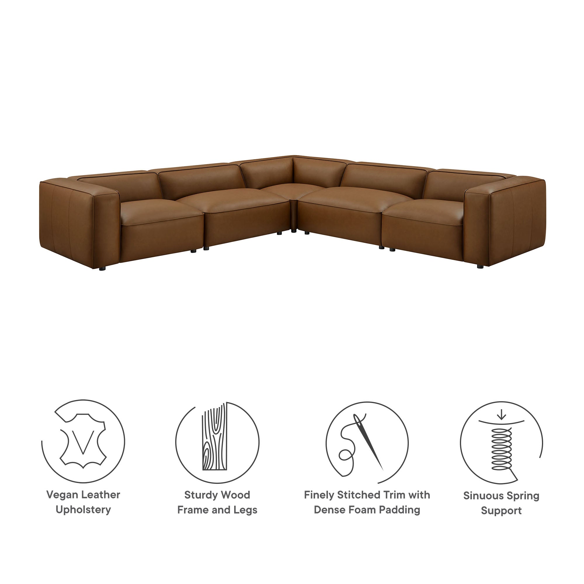 Auren 5-Piece Upholstered Vegan Leather Modular L-Shaped Sofa by Modway