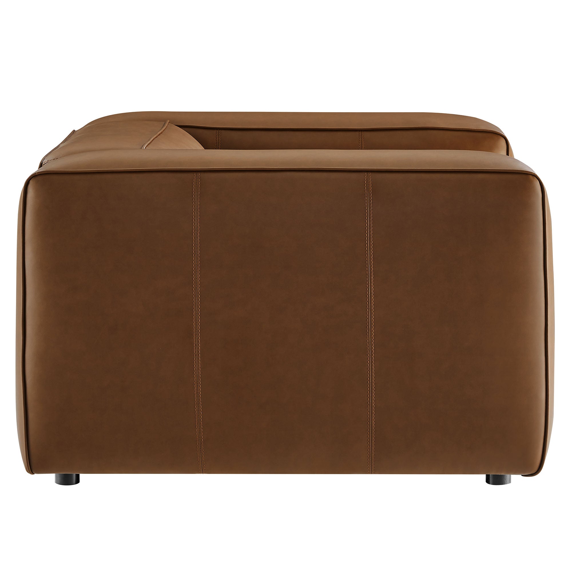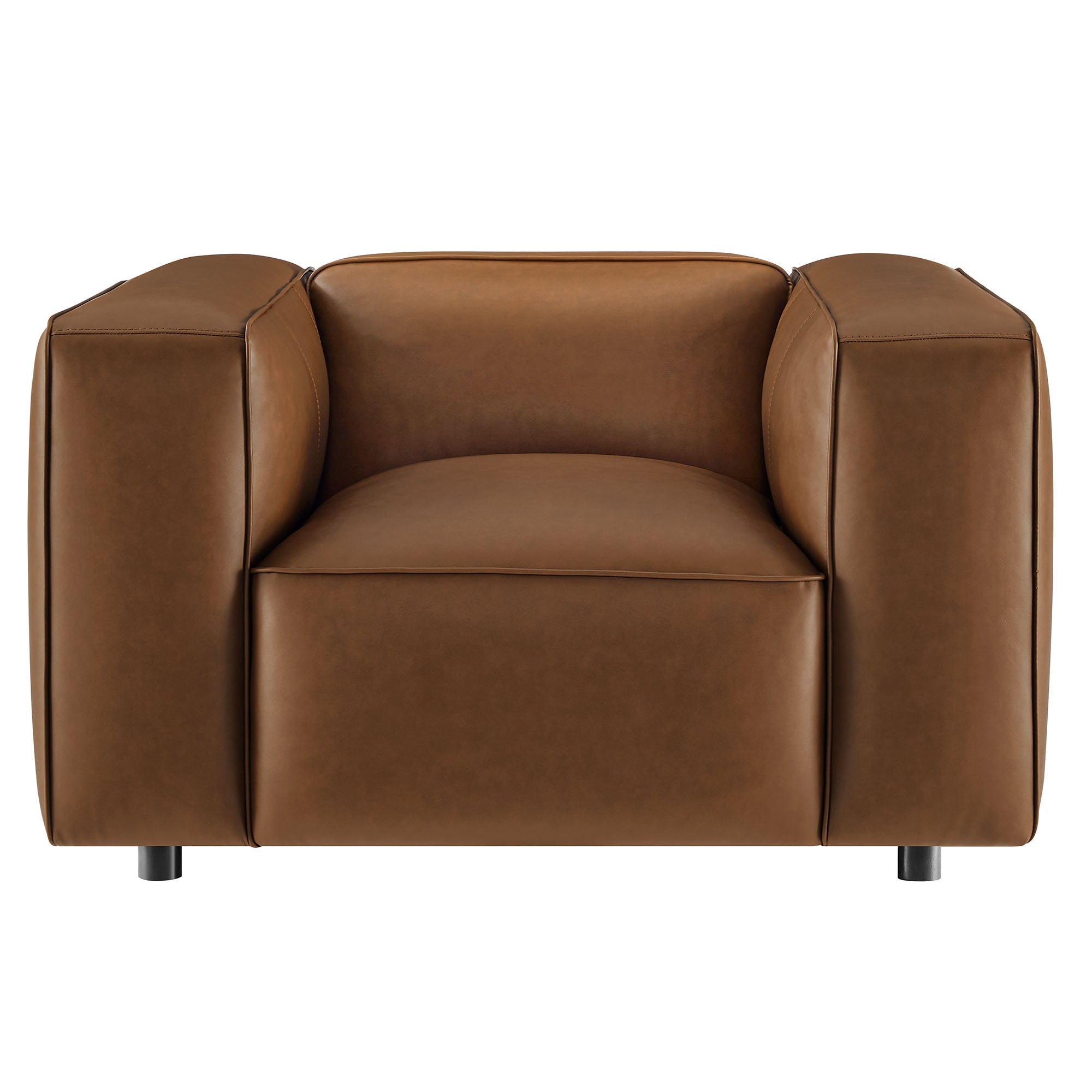 Make your living room feel instantly stylish with the low-key elegance of the Auren Vegan Leather Armchair. Wrapped in smooth, high-quality faux leather, this oversized accent chair blends effortlessly into different interior styles, offering subtle charm. The deep seating invites relaxation, while the low backrest and wide, cushioned armrests create a cozy yet modern aesthetic. Finely stitched trim along the seams adds a tailored finish, while the entire faux leather accent chair is generously padded with dense foam for a soft, supportive feel. Built on a sturdy wood frame, the Auren Club Chair features sinuous springs for firm, flexible seating that holds its shape. Plus, this single sofa chair ships fully assembled with just the legs to attach, so you can relax and enjoy it right out of the box. Whether placed alongside your current furniture or paired with other Auren sectional pieces, this faux leather modular armchair offers versatile styling options to complete your space. Weight Capacity: 800 lbs One - Auren Armchair