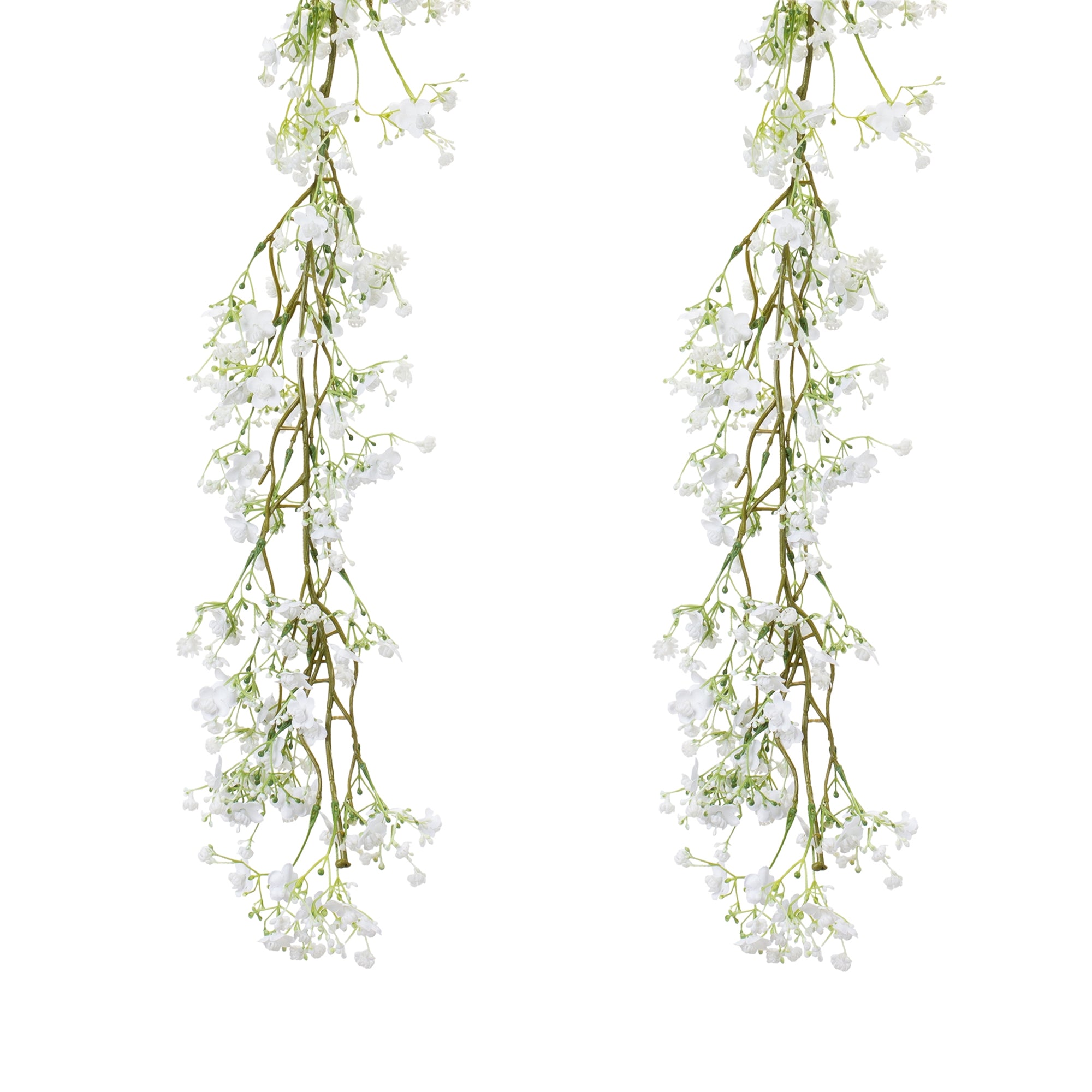 Add a touch of nature to your home decor with this beautiful set of Baby's Breath Garlands. Measuring 6ft long, the bright white flowers paired with the twig accents makes this piece the perfect addition to your spring home decor. The quality plastic and polyester composition is sure to last for seasons to come. Display the peices on your mantle, stairway railing, or as a table centerpiece to make a statement., Baby's Breath Garland (Set of 2) 6'L Plastic/Polyester
