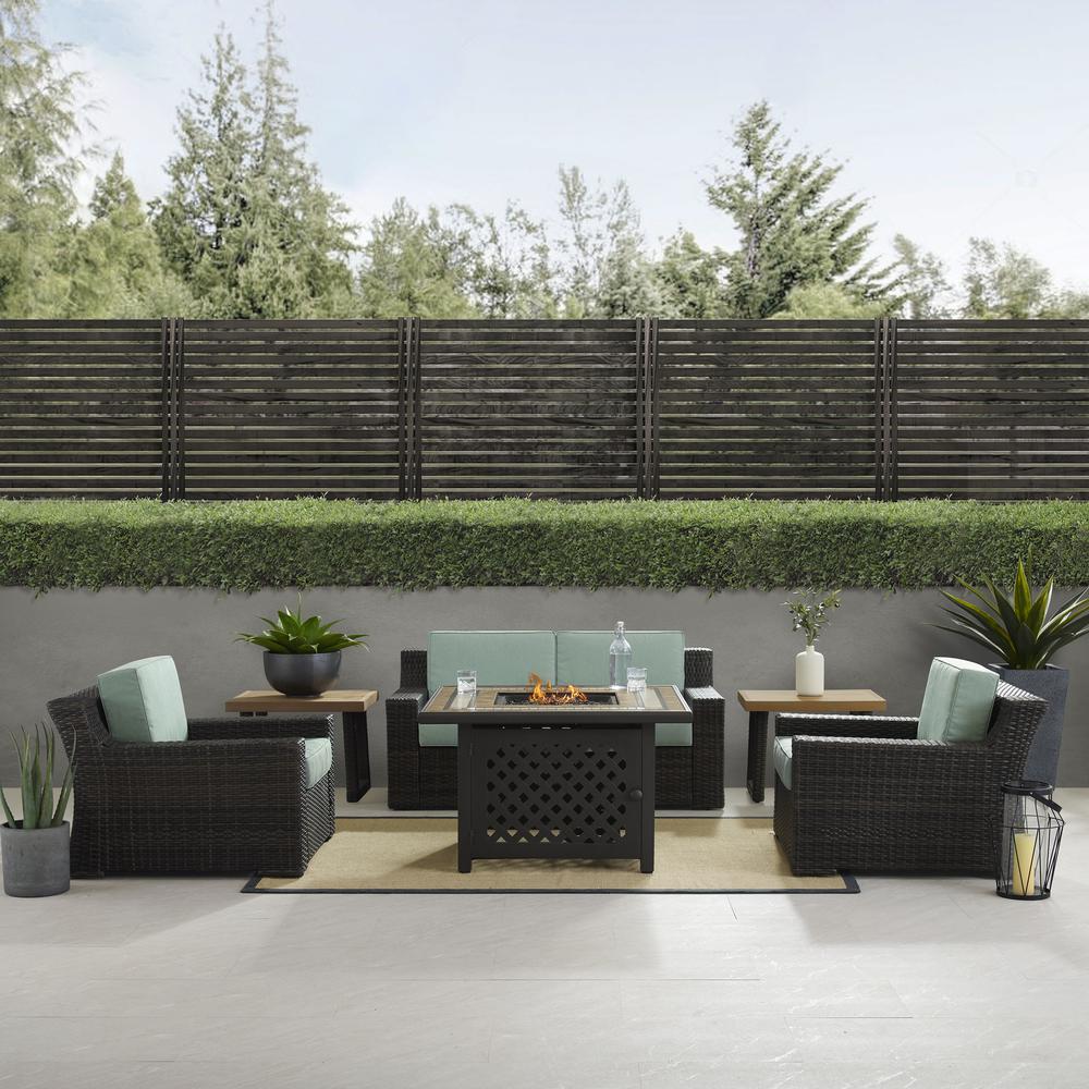 Beaufort 6Pc Outdoor Wicker Conversation Set W/Fire Table Mist/Brown - Tucson Fire Table, Loveseat, 2 Side Tables, & 2 Chairs