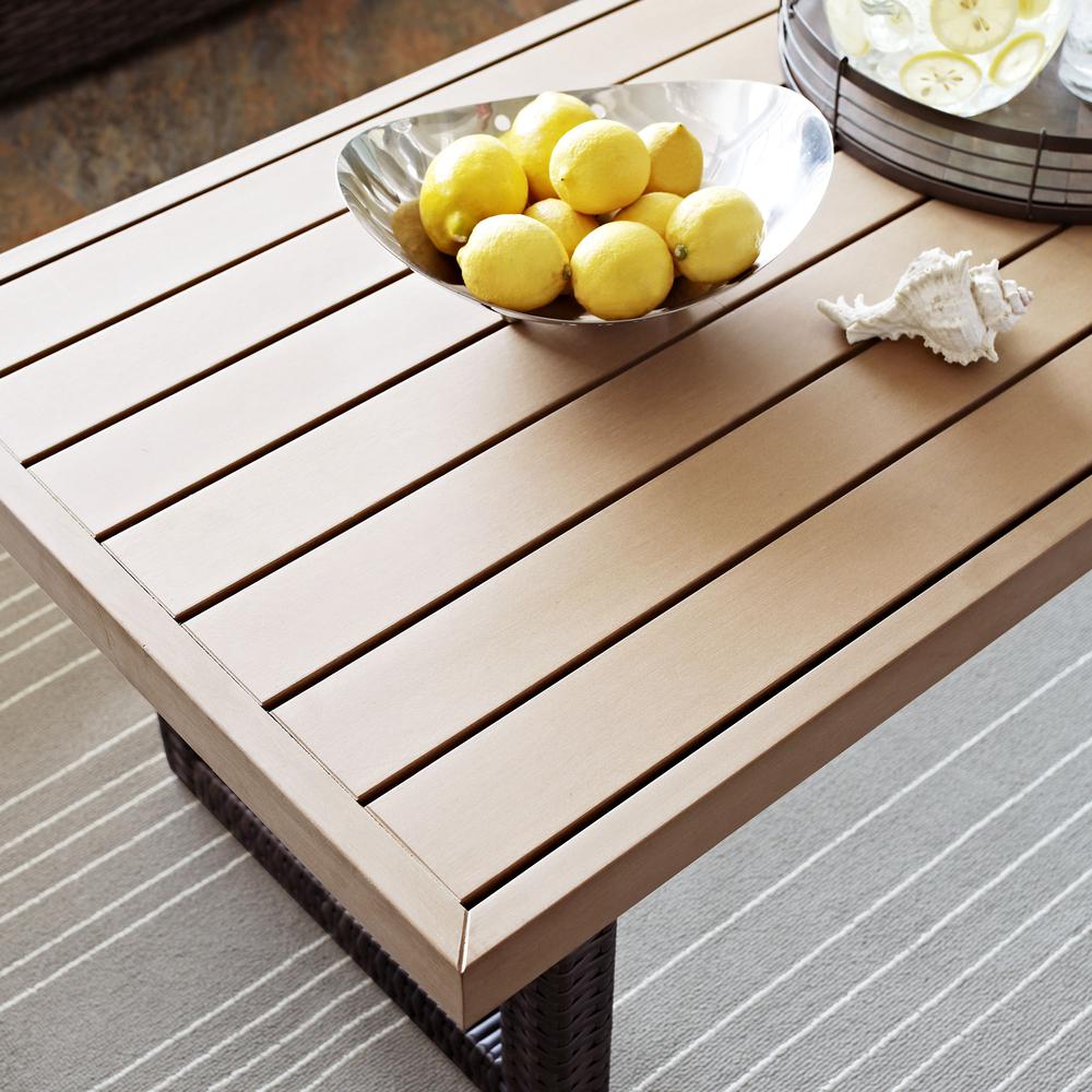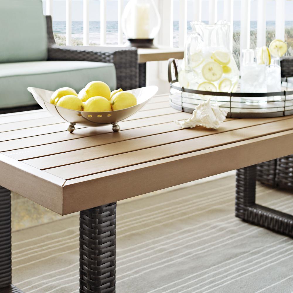 Enjoy drinks by the pool with the Beaufort Coffee Table. Made from durable poly lumber, this outdoor table features a slatted top, perfect for a snack or beverage. With contemporary squared legs wrapped in all-weather resin wicker, the Beaufort Coffee Table is a stunning addition to your outdoor furniture assortment.
