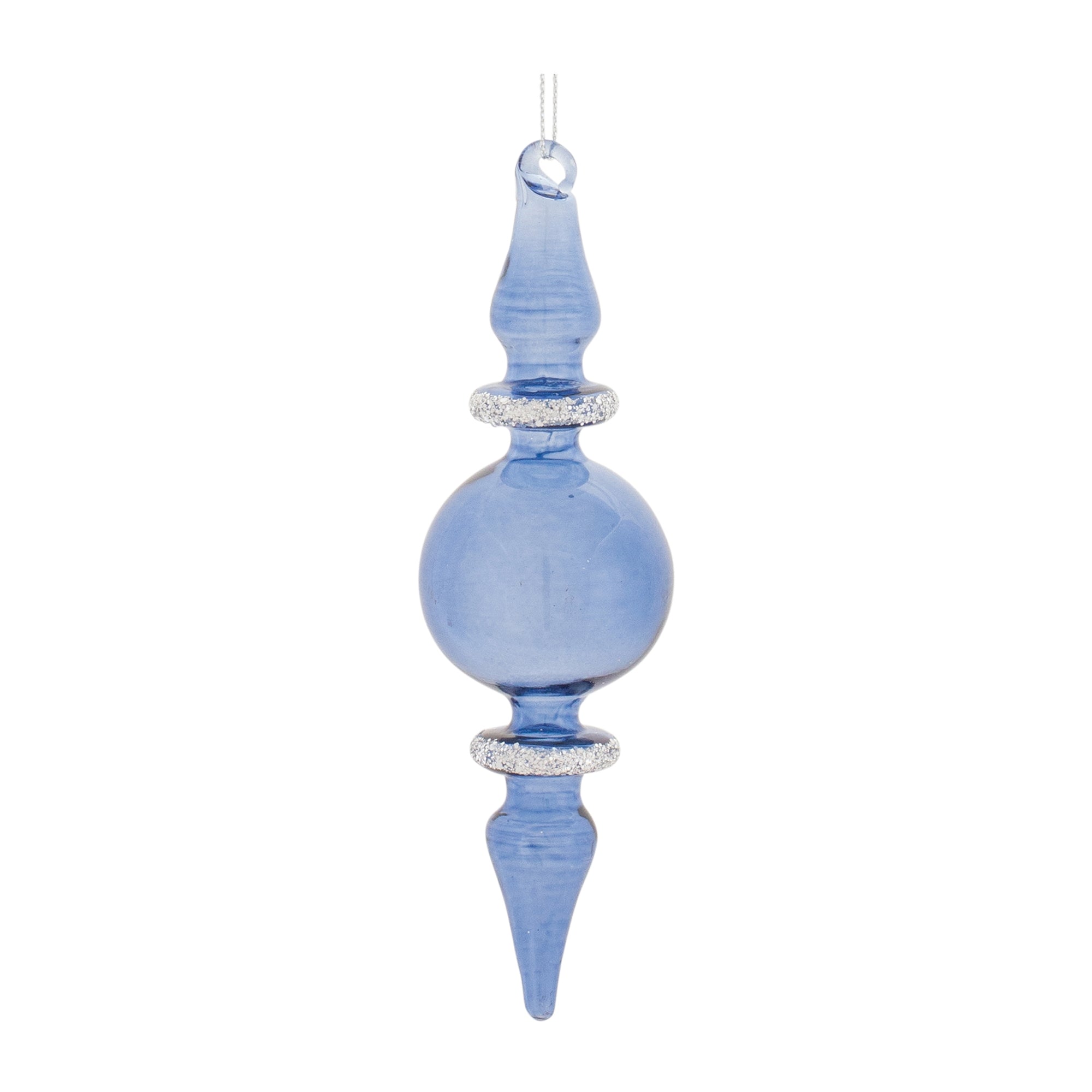 Adorn your Christmas tree and holiday decor with this stunning set of Blue Glass Finial Drop Ornaments. Featuring 12 pieces, the wintry blue tones paired with the finial design is the perfect combination to create a memorable display. The quality glass composition and delicate silver string hanging accent is sure to endure for seasons to come. Whether you're adding a touch of cheer to your home or gifting to a loved one, these ornaments will definitely bring smiles. , Drop Ornament (Set of 12) 6"H Glass