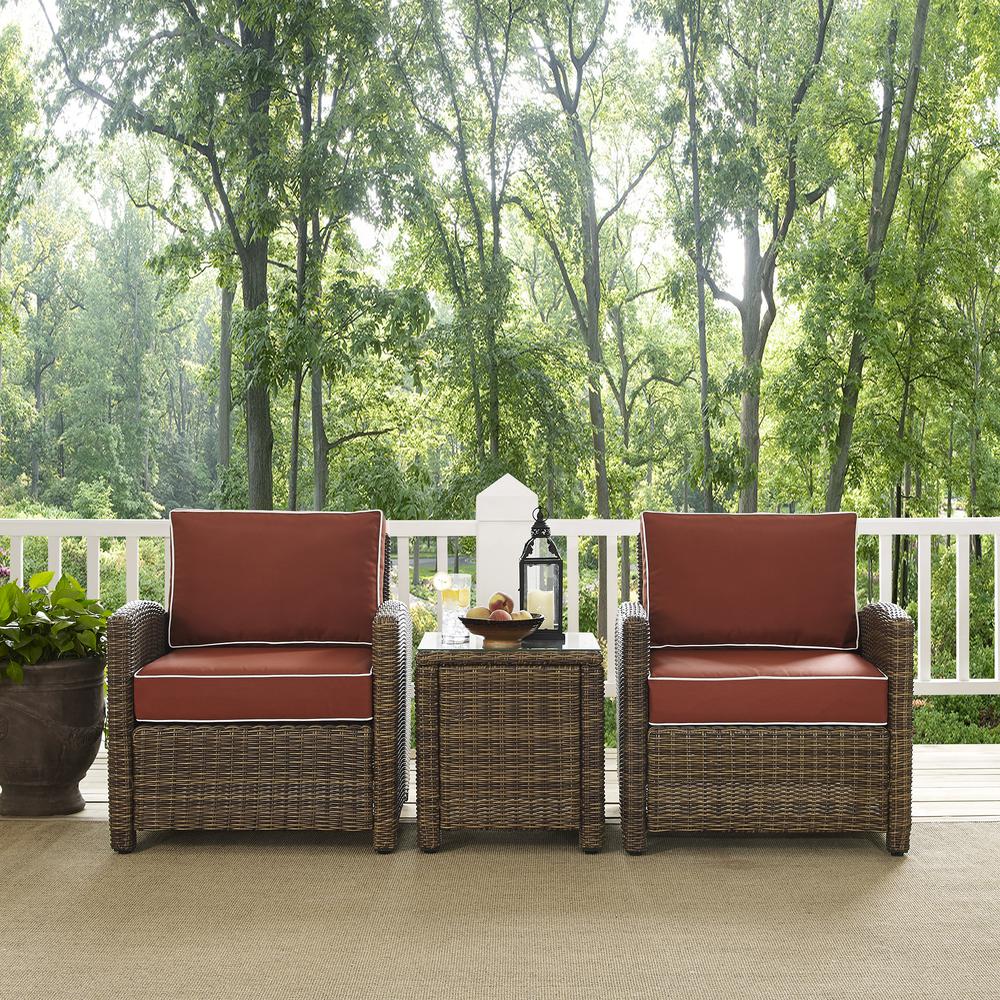 Bradenton 3Pc Outdoor Wicker Armchair Set Sangria/Weathered Brown - Side Table & 2 Armchairs