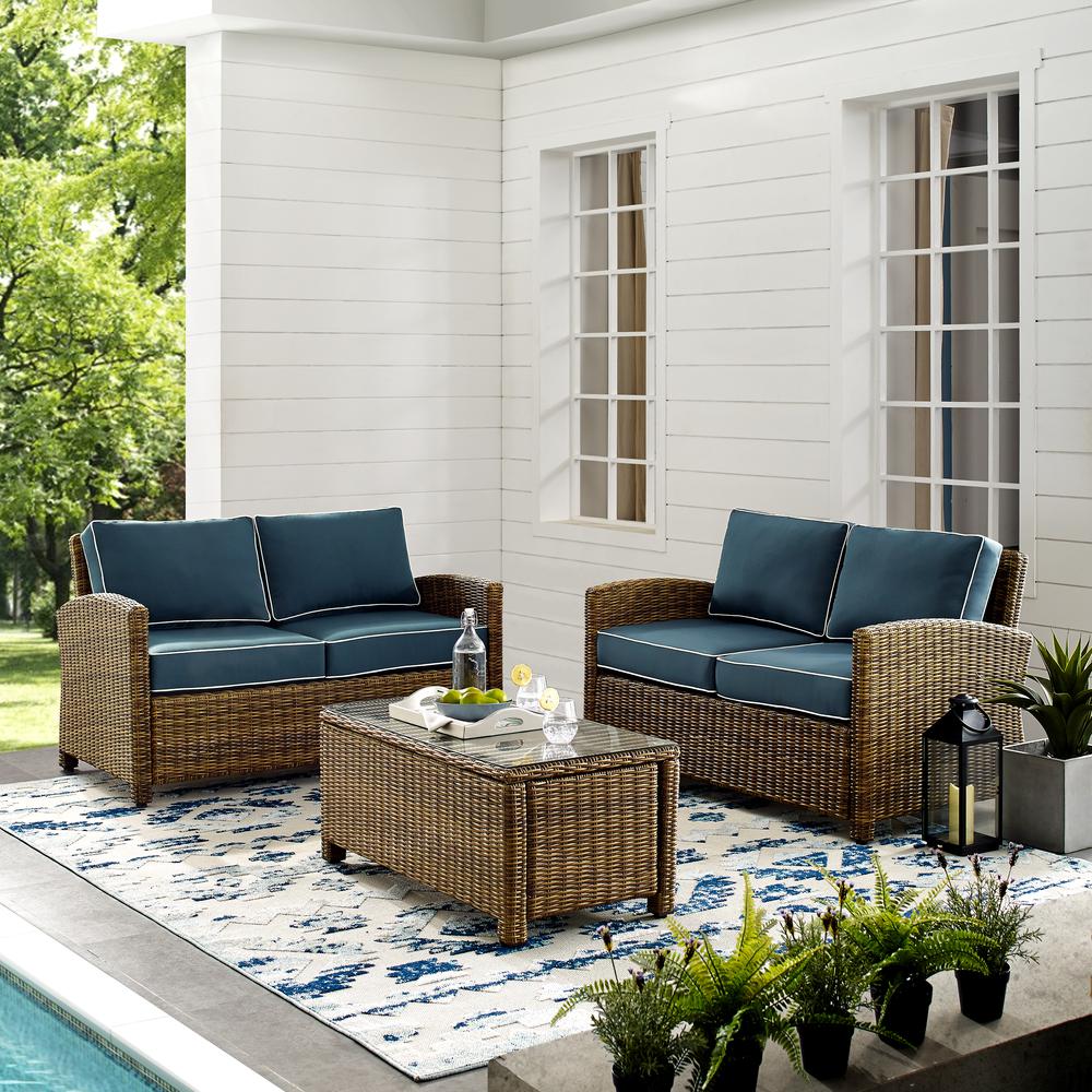 Bradenton 3Pc Outdoor Wicker Conversation Set Navy/Weathered Brown - Coffee Table & 2 Loveseats